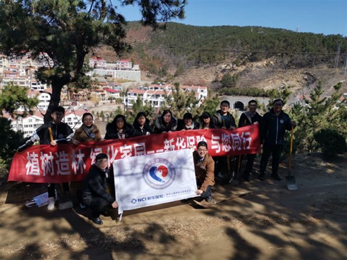 3月,草木秀潤。昨日還細雨綿綿的天空,今天一改陰霾、天青氣朗,是個植樹的好時機。3月12日,趁著陽光正好、春意正濃,新華保險威海中支的志愿者們帶著稚嫩的樹苗奔赴植樹地點。