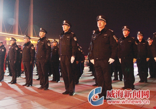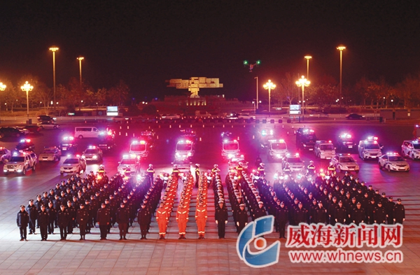 ????當晚6時許,市公安局特巡警、交警、派出所等警種人員及所屬車輛、市消防救援支隊所屬人員車輛在威海國際展覽中心室外廣場完成集結,隊列嚴整,全市禁放煙花爆竹“警燈閃爍”工程正式啟動。