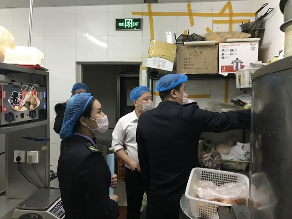 ????隨后,執(zhí)法人員又來到威高美食廣場等餐飲服務(wù)聚集區(qū)進(jìn)行檢查,隨機(jī)抽查了2家餐飲單位,詳細(xì)查看了許可資質(zhì)、索證索票、環(huán)境衛(wèi)生、原料存儲以及加工操作關(guān)鍵點(diǎn)、餐飲具清洗消毒、從業(yè)人員健康狀況等方面,食品安全管理和餐飲操作比較規(guī)范,但存在個別食品無索證索票、食品與非食品混放,執(zhí)法人員責(zé)令餐飲單位立即整改。