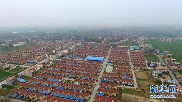 2018年11月14日無人機拍攝的河南蘭考黃河灘區易地搬遷扶貧社區谷營鎮姚寨新村社區。 新華社記者 馮大鵬 攝