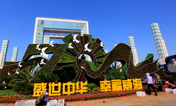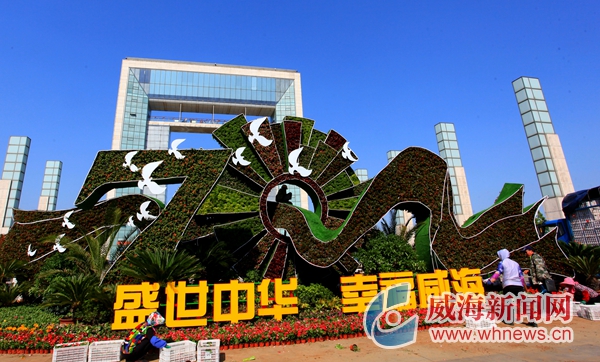 據悉,在人民廣場、環翠廣場等處,園林部門以“國慶70周年”“精致城市·幸福威?!睘橹黝}搭建了多處主題花壇,為市區帶來了濃濃的喜慶氛圍。