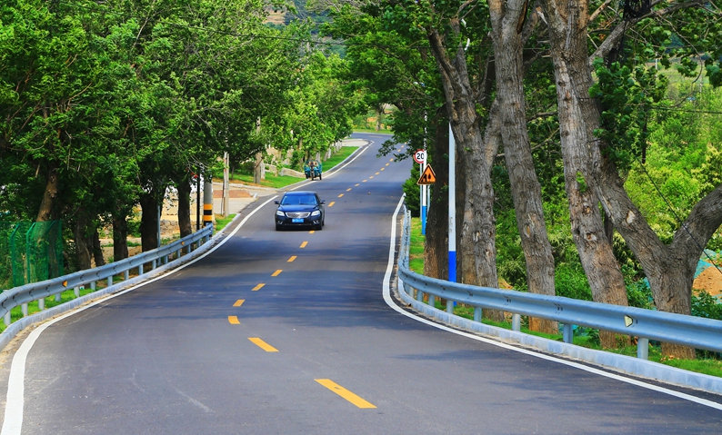 6月17日,在環翠區溫泉鎮,進出村的車輛正行駛在嶄新的東西崮連村公路上。據悉,該路段投資110余萬元改造建設,長1100米,5月初剛剛通車。