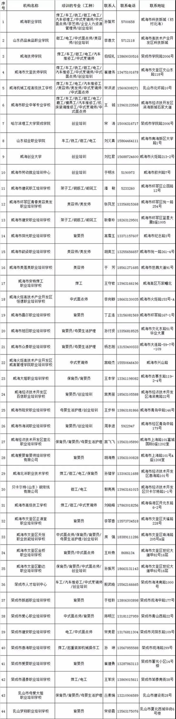 威海市職業(yè)技能認定培訓機構名單