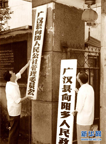 ????1980年6月,廣漢縣向陽鄉在全國率先摘下“人民公社”牌子,掛上了“鄉人民政府”的牌子,成為我國農村管理體制改革的先行者。新華社發