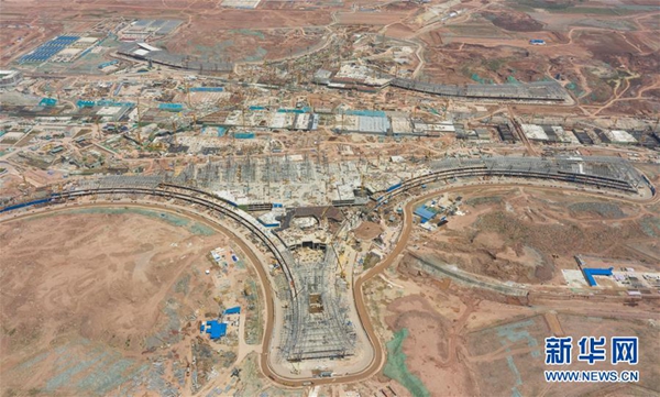 ????成都天府國際機場施工現場一角(5月1日無人機拍攝)。目前,成都天府國際機場主體工程施工進展順利,預計2019年底基本完工,2021年上半年建成投運。新華社記者 江宏景 攝
