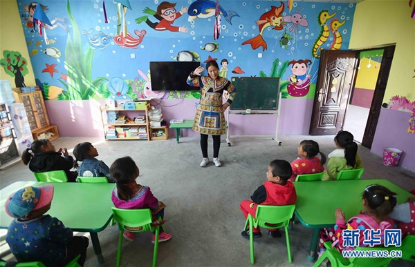 ????在四川涼山彝族自治州普格縣一幼教點,孩子們在教室內與老師互動 (2017年2月20日攝)。四川涼山彝族自治州從2015年開始實施“一村一幼”計劃,推動教育精準扶貧,補齊彝區學前教育短板。新華社記者 薛玉斌 攝