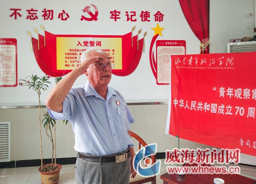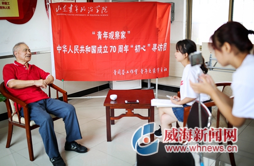 7月29日,環翠區鯨園街道北倉社區社工站迎來了一批年輕的身影。他們是山東青年政治學院中華人民共和國成立70周年“初心”尋訪團的5位大學生志愿者。他們和社區老兵面對面,聆聽老兵們講述紅色故事,并為老兵們留下寶貴的影像資料。