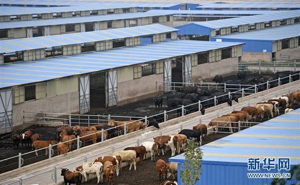 銀川市永寧縣閩寧鎮原隆村肉牛托管養殖基地(2018年8月17日拍攝)。 新華社記者 王鵬 攝