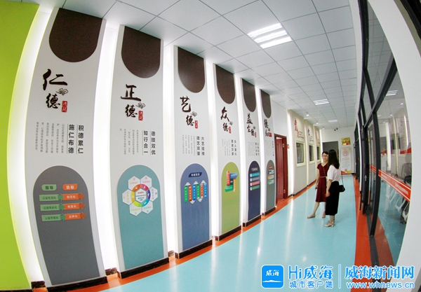 德苑社會組織孵化中心墻壁上的“六德”牌清新醒目。威海晚報記者 姚威 攝