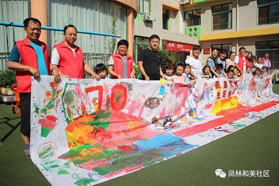 ????今年是國慶70周年,這是個四海歡騰的節(jié)日,為慶祝這一大慶的到來,鳳林和美社區(qū)聯(lián)合鳳林中心幼兒園組織開展手繪巨幅天安門廣場為國慶獻禮活動,讓社區(qū)退役士兵黨員不忘初心,退伍不褪色永遠(yuǎn)跟黨走,同時關(guān)愛轄區(qū)的留守兒童,播撒愛心陽光,陪伴他們一起迎中秋慶國慶。