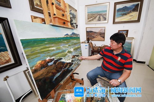 用畫筆描繪大海情懷。