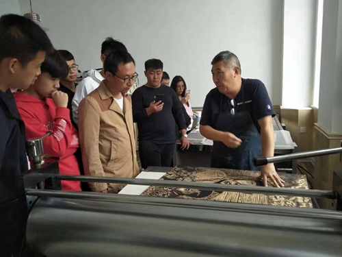 在國際藝術島,一場版畫體驗活動讓不少觀眾第一次在展覽上獲得了創作藝術的機會。來自東營的教師武光亮、張海霞帶著近20名學生前來威海參加藝博會,在體驗活動現場,學生們在版畫藝術家馬自立的指導下進行創作。張海霞說:“今天零距離體驗了版畫藝術,我很感興趣,發現藝術其實可以觸手可及。”