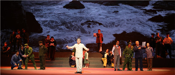“捧手稿強忍淚水不忍展卷,心中涌起了滔滔巨瀾,多少不眠夜孜孜不倦”“爐火熊熊煙彌漫,哪怕前路多艱險,游子還鄉談笑中”……在美國加州理工學院留學,郭永懷以驚世之才躋身世界知名科學家行列,卻在榮譽和鮮花加身時毅然回國。臨行前,不得已,他將自己沒有公開發表過的所有書稿一疊一疊丟進火里,燒成灰燼,臺上的“永懷”慨然唱出:“哪怕是焚琴煮鶴,決不能給他人片語只言!”