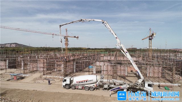 ????在石島工業(yè)園的南極磷蝦高端生物項(xiàng)目施工現(xiàn)場,大型機(jī)械車輛來回穿梭,一派繁忙景象。