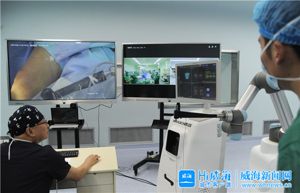 此次手術(shù)由泰山學(xué)者特聘專(zhuān)家、威海市中心醫(yī)院院長(zhǎng)叢海波操控,依托中國(guó)移動(dòng)和華為公司提供的5G通訊技術(shù)和設(shè)備終端,與石島醫(yī)院進(jìn)行遠(yuǎn)程連接,并利用威海市中心醫(yī)院與威高集團(tuán)共同合作研發(fā)的人工智能磁導(dǎo)航手術(shù)機(jī)器人系統(tǒng),為一例膝關(guān)節(jié)前交叉韌帶重建手術(shù)進(jìn)行骨隧道定位。在石島醫(yī)院,該院院長(zhǎng)于曉峰和市中心醫(yī)院運(yùn)動(dòng)醫(yī)學(xué)科副主任余志平配合完成本臺(tái)手術(shù)。