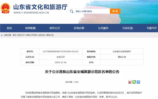 好消息!12月16日,山東省文化和旅游廳公示了首批山東省全域旅游示范區名單,威海榮成市入圍!