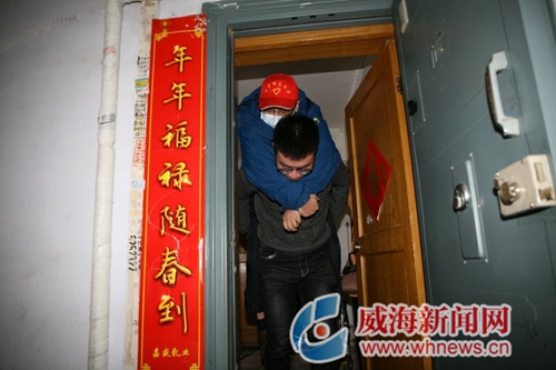 ???威海新聞網1月16日訊(記者 王春苗 文 于啟波 圖)在威海,愛心故事每天都在發生。1月14日,殘疾人劉同亮突發高燒38.5℃,由于上下樓不便,他在家中十分焦急。在長城愛心大本營志愿者的幫助下,他順利就醫。志愿者抱著劉同亮的場景,成為冬日里溫暖的景致。