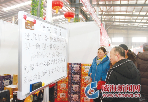 ????環顧展會現場,威海壹鵬食品的大餑餑禮盒優惠20至40元,古川源酒業全場半價,大多參展商都推出了不同折扣優惠促銷。
