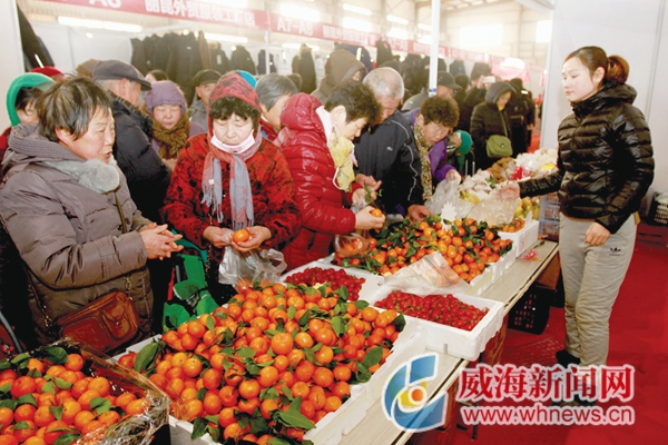 ????農(nóng)產(chǎn)品以時令水果主打,也為威海消費者帶來了不少南方特色水果。“今天上午一直有人咨詢我們的產(chǎn)品,目前最受歡迎的是沙糖桔,不少人都是好幾箱地購買。”威海精誠果業(yè)的工作人員王震告訴記者,他們的水果全部都是從原產(chǎn)地進(jìn)貨,像沙糖桔是正宗廣西產(chǎn)的,這個地方的沙糖桔很甜,特別好吃,過年大家都喜歡買。另外,他們還從外地進(jìn)了幾十種水果,包括火龍果、香梨、橙子和越南的黑美人(西瓜)等。
