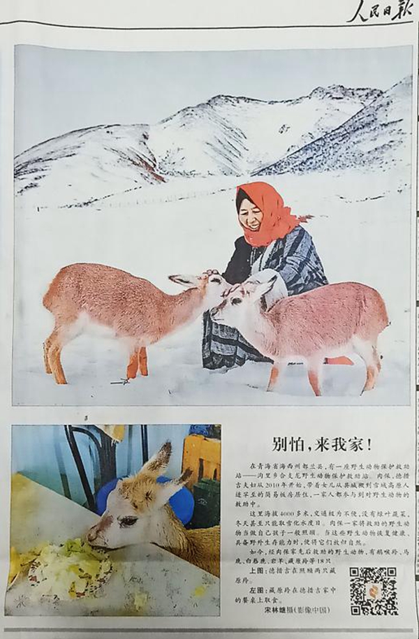????刊登在人民日報2019年1月16日 14 版的宋林繼攝影作品《別怕,來我家!》講述的是在青海省海西州都蘭縣海拔4000多米高的一座野生動物保護救助站——溝里鄉合支龍野生動物保護救助站的故事。