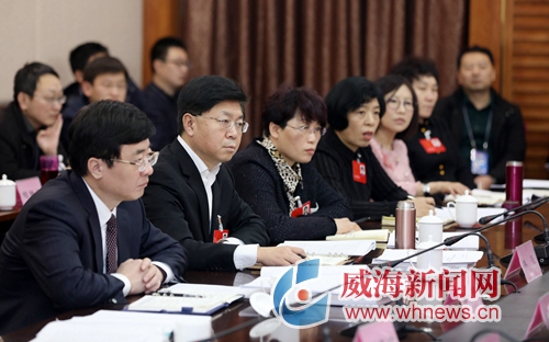 威海代表團代表正在認真聽會。記者 孫大偉 攝