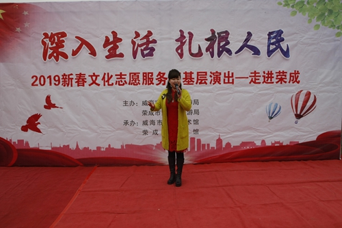 2月18日上午,夏靜跟隨由威海市文化和旅游局、榮成市文化和旅游局主辦,威海市群眾藝術館、榮成市文化館承辦的“深入生活 扎根人民”2019新春文化志愿服務下基層演出,走進榮成,在崖頭大集上演出。