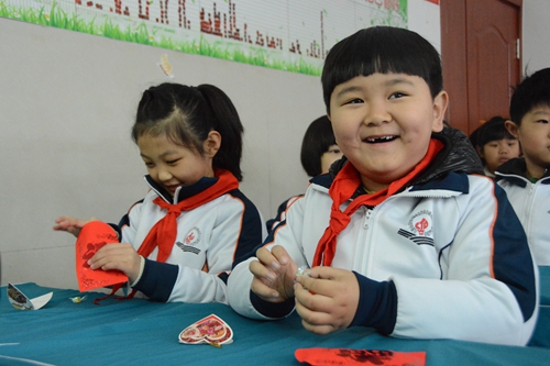 普陀路小學(xué)學(xué)生展示新年小制作 李宏偉 攝