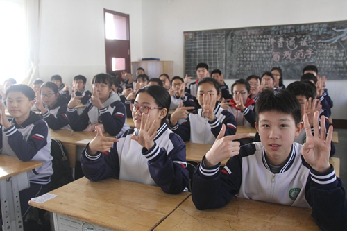 古寨中學(xué)學(xué)生練習(xí)手指操。湯曉蓉 攝