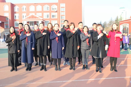 教師們莊嚴宣誓:文化引領,管理立身,伴你播種理想!人文奠基,科技振翅,助你匯聚能量!涵養正氣,開闊格局,做有使命的中國人!鏗鏘的誓言表達了一小教師文化育人的愛心和決心。