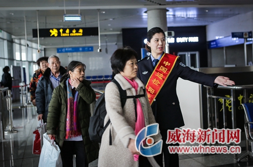 旅客如織,魚貫而出。威海出入境邊防檢查站客運港分站女警王璐璐、馮雅楠早早守在梯口處,她們面露微笑,熟練地引導旅客乘坐擺渡車。碼頭邊海霧茫茫,她們身上的藏藍警服卻分外醒目。