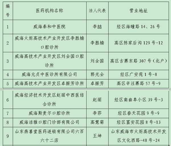 擬定威海市基本醫療保險定點醫藥機構名單的公示