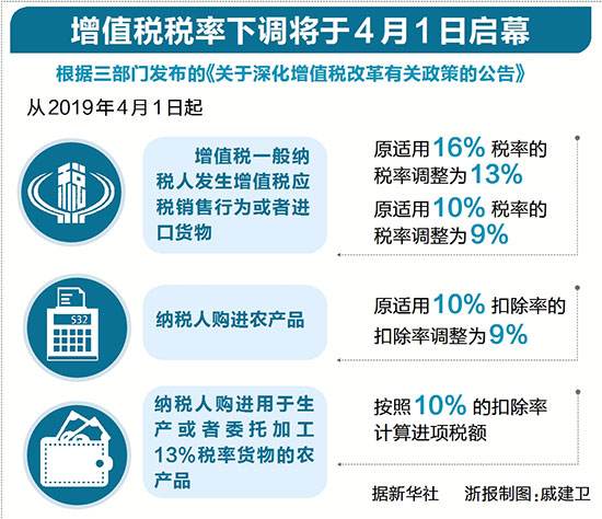 4月1日起,不少行業(yè)的企業(yè)將再度獲得“減負福利”。制造業(yè)等行業(yè)增值稅稅率將由16%降至13%,交通運輸和建筑等行業(yè)增值稅稅率將由10%降至9%。