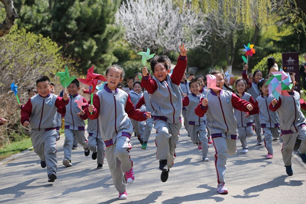 威海市實(shí)驗(yàn)小學(xué)組織學(xué)生到環(huán)翠樓踏青研學(xué)。楚瑩智 攝