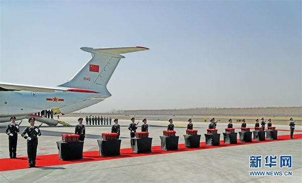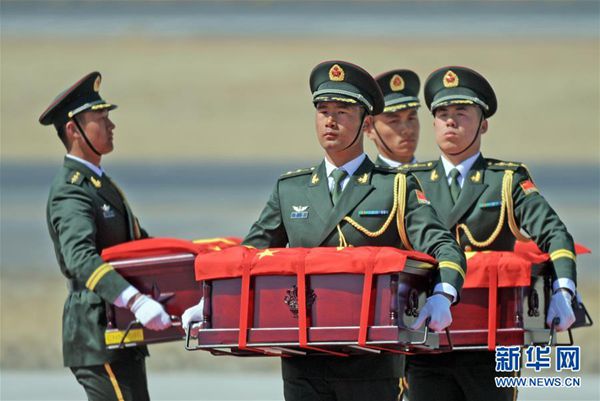 ????11時(shí)36分許,空軍專機(jī)平穩(wěn)降落在遼寧沈陽(yáng)桃仙國(guó)際機(jī)場(chǎng)。這架飛機(jī)當(dāng)天從韓國(guó)仁川國(guó)際機(jī)場(chǎng)起飛回國(guó),機(jī)上載有10位志愿軍烈士的遺骸及145件相關(guān)遺物。專機(jī)進(jìn)入中國(guó)領(lǐng)空后,兩架戰(zhàn)斗機(jī)全程護(hù)航,用空軍特有的方式向志愿軍烈士致敬。