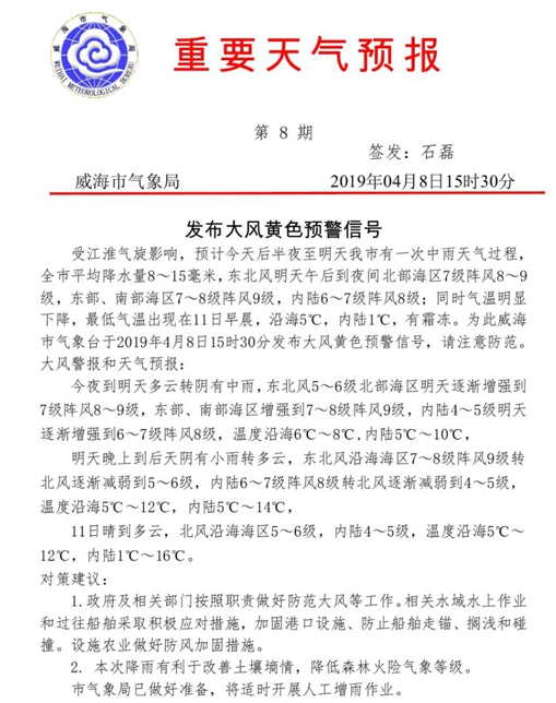 2019-04-08 16:34:25    來源: 威海市氣象臺