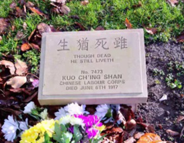 ????經過治療,大多數人脫離了危險,但有五名華工卻在此去世。這五名華工就是埋葬在安菲爾德墓地的郭慶山、孫成生、范傳勝、郭德祥和劉鳳祥。根據醫院當時留下的記錄,郭慶山編號7473,卒于1917年6月6日;孫成生編號34559,卒于1917年9月3日;范傳勝編號70062,卒于1918年1月25日;郭德祥編號134274,卒于1918年7月6日;劉鳳祥編號131474,卒于1918年8月9日。