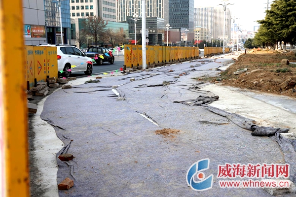 便道完成施工,正在進行養護。威海晚報記者 陳婷 攝