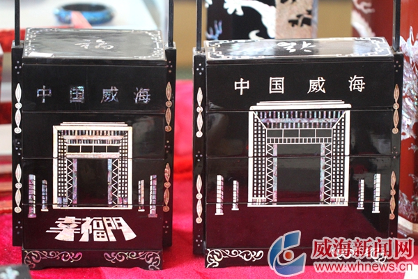 ????在王紹祿的漆貝工藝品生產車間里,記者看到了各類漆貝工藝品:飾有威海地標圖案的食盒、飾有翠竹圖案的紅酒柜、飾有鄧世昌人像的漆盤擺件……件件光潤柔亮、膩若凝脂,這些富有威海文化特色的螺鈿漆器,既不失中國傳統漆器的精粹,又能彰顯威海本土的文化特色,是古典與現代完美交融的藝術品,美不勝收。