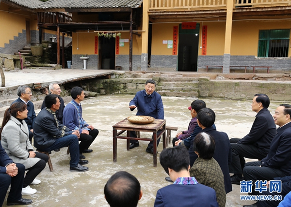 ????新華社重慶4月17日電 中共中央總書記、國家主席、中央軍委主席習近平4月15日至17日在重慶考察,主持召開解決“兩不愁三保障”突出問題座談會并發表重要講話。他強調,脫貧攻堅戰進入決勝的關鍵階段,各地區各部門務必高度重視,統一思想,抓好落實,一鼓作氣,頑強作戰,越戰越勇,著力解決“兩不愁三保障”突出問題,扎實做好今明兩年脫貧攻堅工作,為如期全面打贏脫貧攻堅戰、如期全面建成小康社會作出新的更大貢獻。