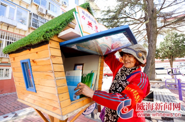 居民捐獻(xiàn)書(shū)籍供大家閱讀 威海晚報(bào)記者 薛航 攝