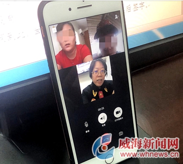 法官(下)通過微信進行視頻開庭 威海晚報記者 徐澤華 攝