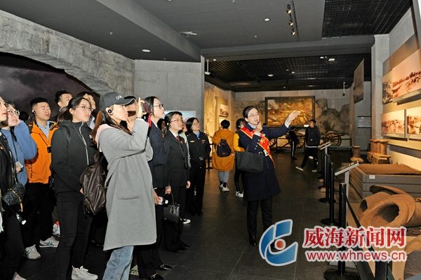近日,高新區(qū)團委舉辦“青春心向黨”暨紀(jì)念五四運動100周年活動,來自全區(qū)機關(guān)企事業(yè)單位的100位團員青年代表登上劉公島,回顧歷史,緬懷忠魂,重溫五四精神。圖為青年們在中國甲午戰(zhàn)爭博物館陳列館參觀學(xué)習(xí)。 威海晚報記者 徐澤華 攝