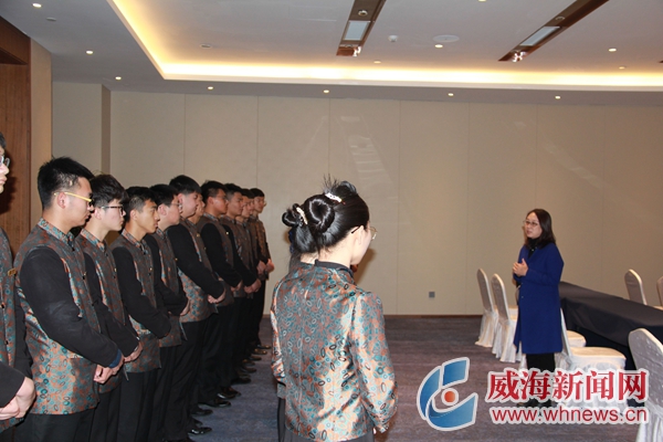威海市職業中等專業學校相關負責人表示,學校得到酒店方邀請后,立刻召開工學結合動員會議,選拔出6名教師、24名酒店專業學生和6名雕刻團隊學生進行前期培訓。4月16日,36名師生便來到酒店,進一步接受校企聯動培訓,培訓內容從形象塑造、規章制度、茶水知識、菜品知識、專業技能等多維度展開,全面提升師生的綜合素質和業務能力。