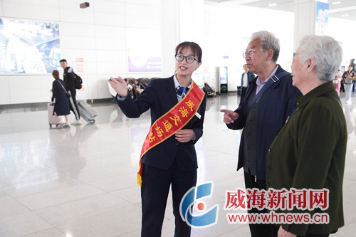 城鐵站工作人員在疏導車輛。 圖片由威海日報記者攝