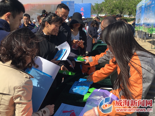 市民踴躍咨詢并領取防災減災相關宣傳手冊 威海晚報記者 周穎 攝
