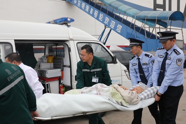 當日8時許,石島出入境邊防檢查站接到華東海運公司的求助電話,稱即將入境石島的“華東明珠-8”號客貨班輪上,有一名不慎摔傷骨折的老人,急需下船治療,請求邊檢站提供通關便利。