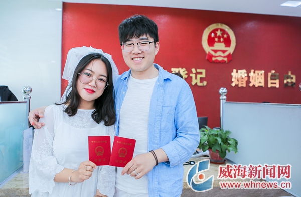 一對新人于昨日登記結婚 威海晚報記者 薛航 攝