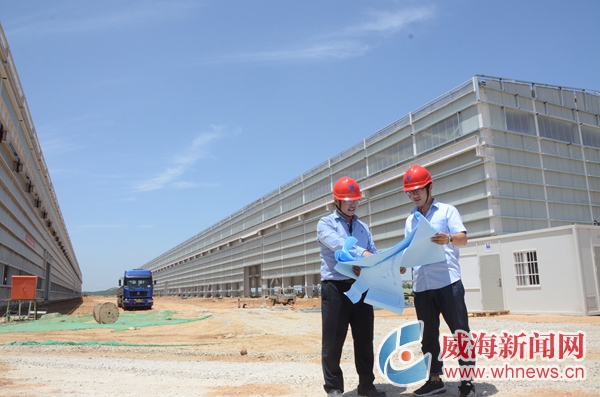 一進(jìn)現(xiàn)場,立刻被眼前矗立的兩個(gè)長300多米、高近20米的鋼結(jié)構(gòu)大廠房所震撼,“這兩個(gè)車間面積5萬多平方米,目前主體已完成,正在硬化地面,明天開始上外墻板。”威海奧東金屬結(jié)構(gòu)制造有限公司主要負(fù)責(zé)人王亮指著廠房興奮地說:“按照這個(gè)速度,總工期能比原計(jì)劃提前3個(gè)月,國慶節(jié)就能投產(chǎn),正好為新中國成立70周年獻(xiàn)禮。”