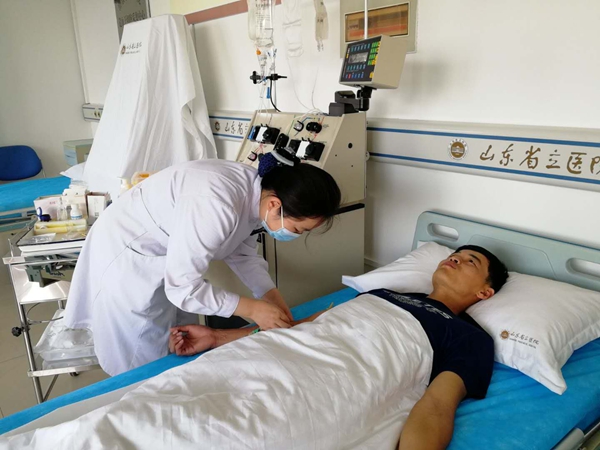 5月25日,身體條件和高分辨采集檢測都合格的江永剛,在市紅十字會工作人員及同事陪同下,趕往山東省立醫院捐獻造血干細胞。