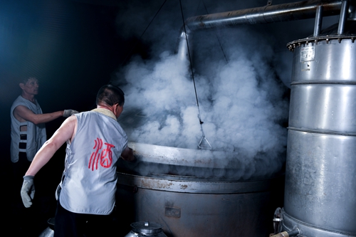 據(jù)介紹,文登學(xué)酒生產(chǎn)所用原料必須是優(yōu)質(zhì)的“五糧”——高梁、玉米、小麥、大米、糯米,要求顆料均勻飽滿、新鮮、無異雜味。釀酒生產(chǎn)過程所需用水完全采用昆崳山優(yōu)質(zhì)礦泉水。在選料、生產(chǎn)用水、制曲過程、入窖固態(tài)發(fā)酵、蒸餾、貯藏、灌裝等每一道程序上,都是嚴(yán)格把關(guān),精益求精。